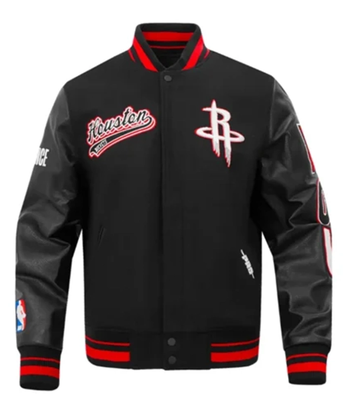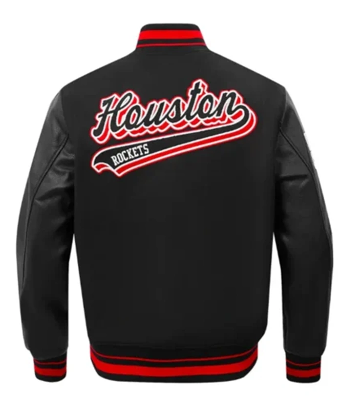 Houston Rockets Script Tail Classic Rib Black Varsity Jacket